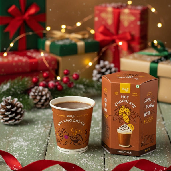 Enjoy the rich aroma of Chocolate and authentic Hot Chocolate in seconds with Cup-Ji’s innovative paper cup design. It features an integrated capsule bucket with Cocoa, Dark Chocolate, and Milk solids sealed under aluminium foil. Just peel, pour boiling water, and stir! Perfect for travel, work, or home, it is hygienic and tasty. Available in small packs for easy sampling, Cup-Ji makes Hot Chocolate effortless. Sip convenience, taste tradition—order now!