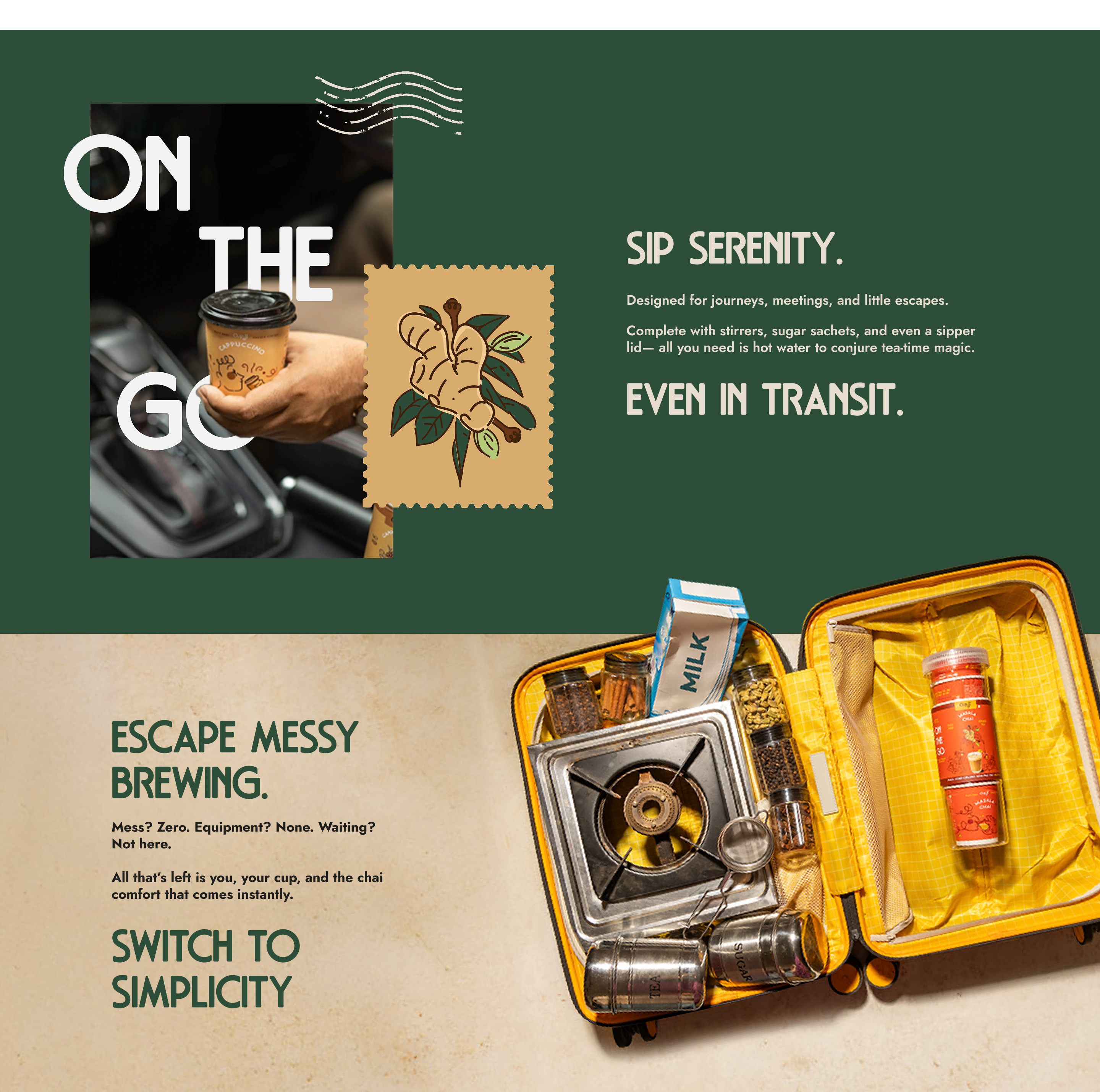Enjoy the rich aroma of cardamom, ginger and cinnamon, and authentic chai in seconds with Cup-Ji’s innovative cup design. It features an integrated capsule bucket with tea premix sealed under aluminum foil. Just peel, pour boiling water, and stir!